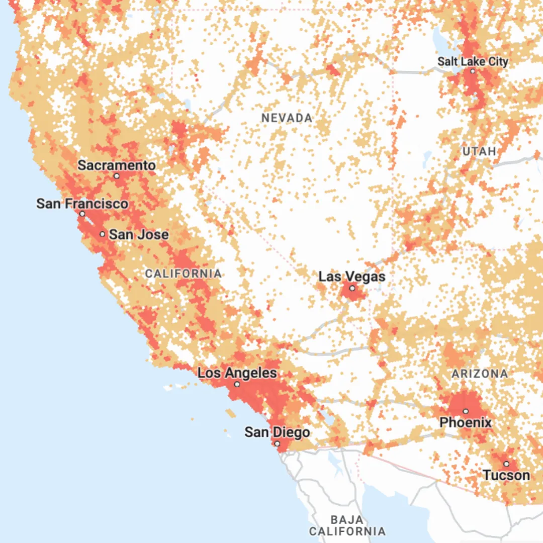 Check out the map below (click here to open it in full screen)! In this example, yellow and red areas - such as those on the outskirts of Atlanta - have been identified as ideal for 5G network expansion. How? Using the FCC Mobile Availability data, gaps in the 5G network have been identified. Within these gaps, hotspots of high population density have been calculated, representing areas where a statistically significant number of residents have no access to 5G data.