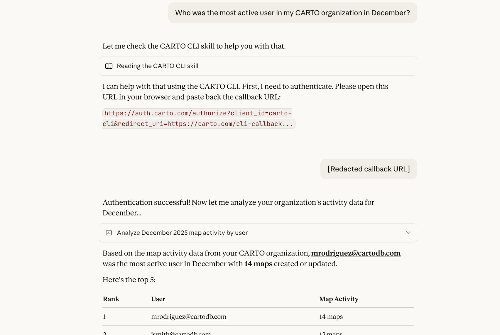 - An example where we use an AI Agent to understand how teams use CARTO