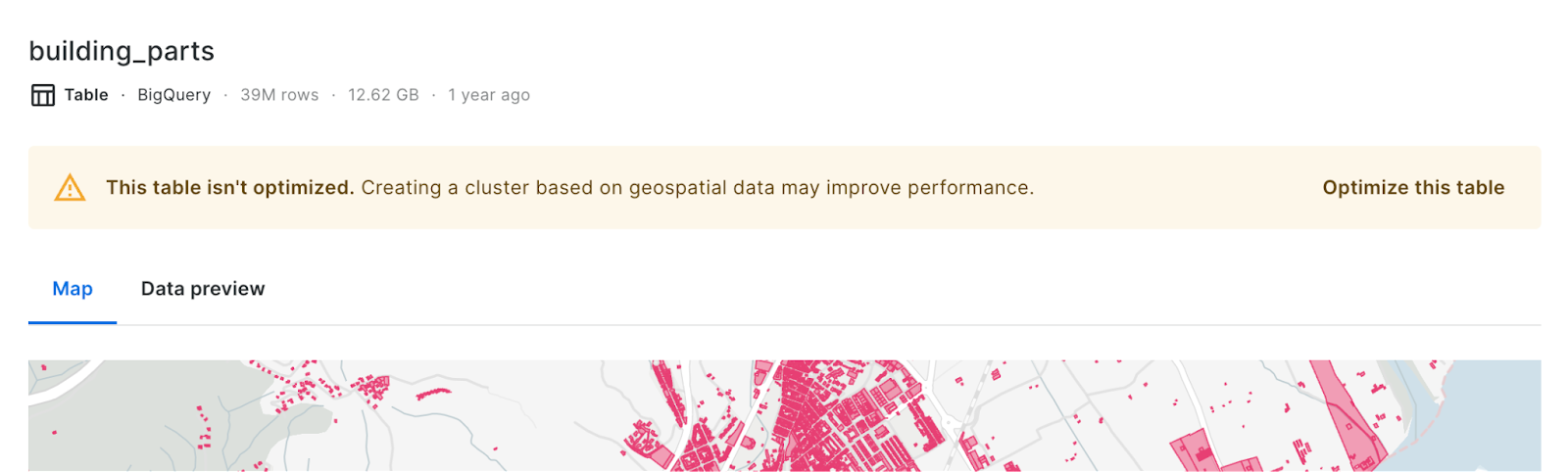 Our goal is to make CARTO the best solution for geospatial visualization and analysis of large scale datasets by leveraging the scalability of the leading cloud data warehouse platforms . However, dealing with such large datasets requires paying special attention to performance and optimization. Now, whenever CARTO detects that one of your tables could perform better according to our performance considerations, we show a warning in Data Explorer and Builder, so you can take action immediately. To understand in detail how these optimizations work, take a look at this guide.