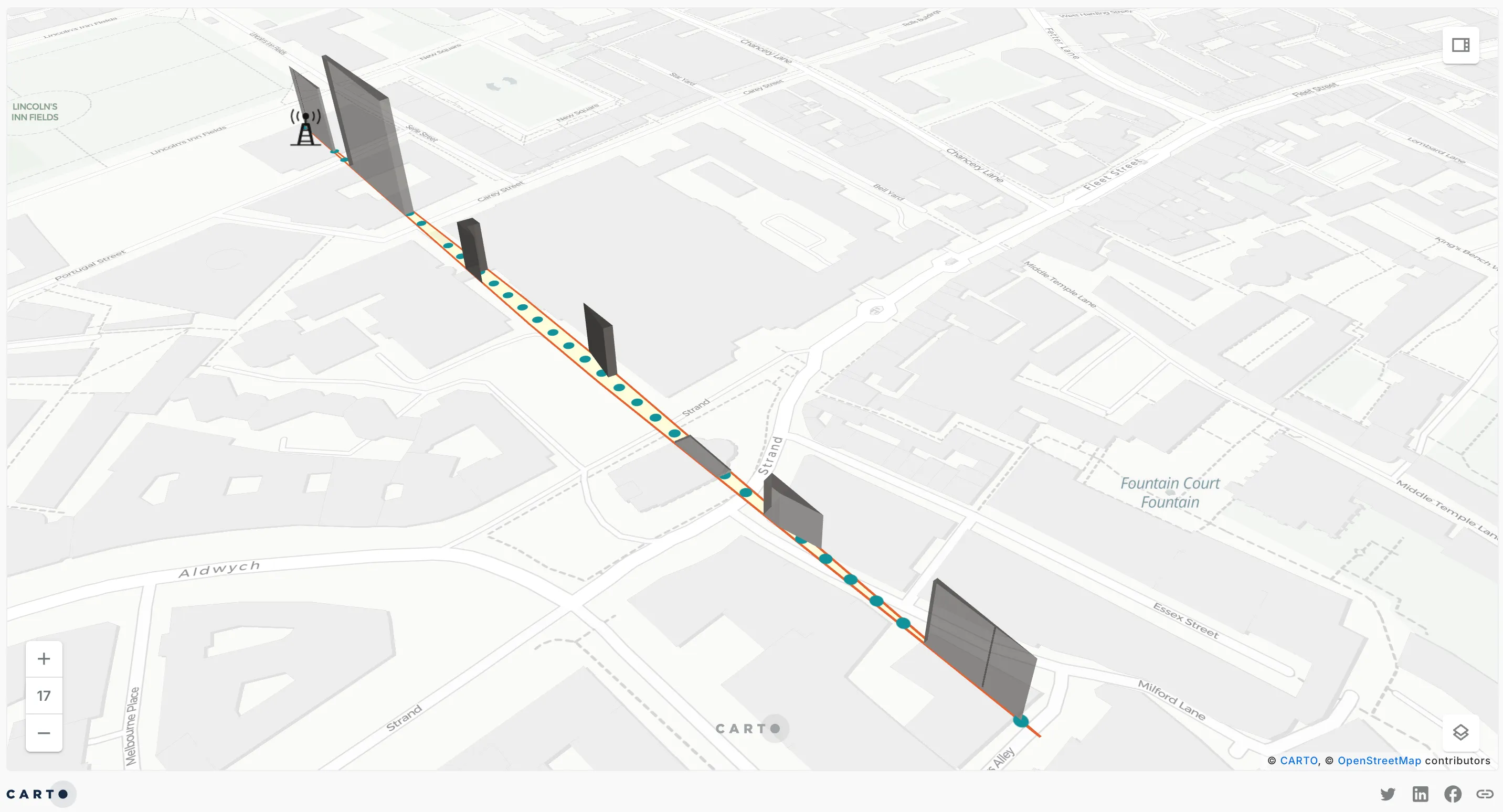 We have now made a new Telco Signal Propagation Models extension package available for CARTO Workflows, tailored specifically for advanced telecom signal propagation analysis. This new addition empowers users to analyze wireless communication networks effortlessly, without requiring extensive coding knowledge. Running natively on Google BigQuery (with support for other data warehouses coming soon), this new extension provides components for line-of-sight analysis and path loss estimation, complementing our existing capabilities for analytics, data processing and data enrichment for the telecommunications industry.