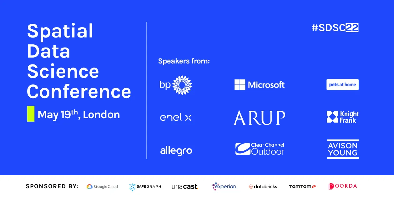 On May 19 #SDSC22 in London will kick off at 09:30 GMT +1 with an opening keynote from Javier de la Torre Founder & Chief Strategy Officer of CARTO followed by a day of sessions featuring speakers from leading enterprise organizations (including Vodafone Business Microsoft Google and TomTom) on how they use Spatial Data Science in their day-to-day.