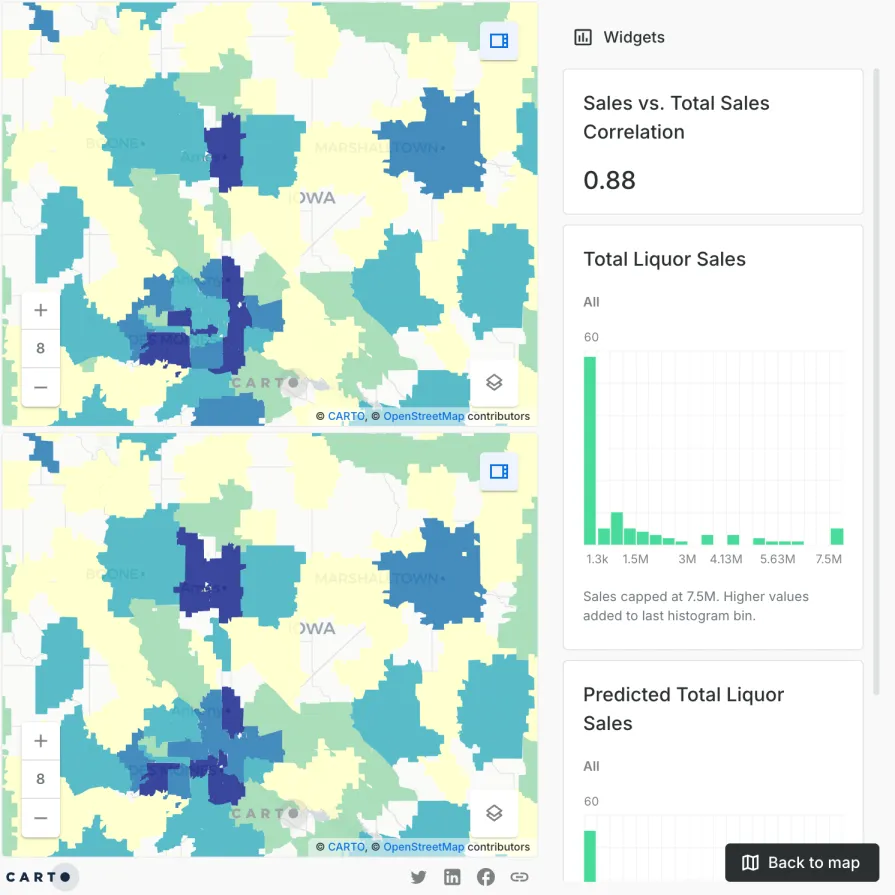 To evaluate how well these embeddings perform in a common business scenario, we used Iowa's open Liquor Sales dataset to predict total annual liquor sales by ZIP Code Tabulation Area (ZCTA) across the state.