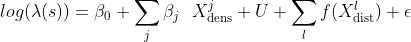 We also plot the random effects of each covariate starting with the smooth functions for the distance-based covariates as shown for the New York urban area: