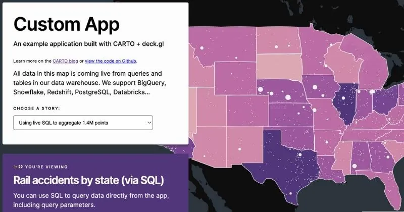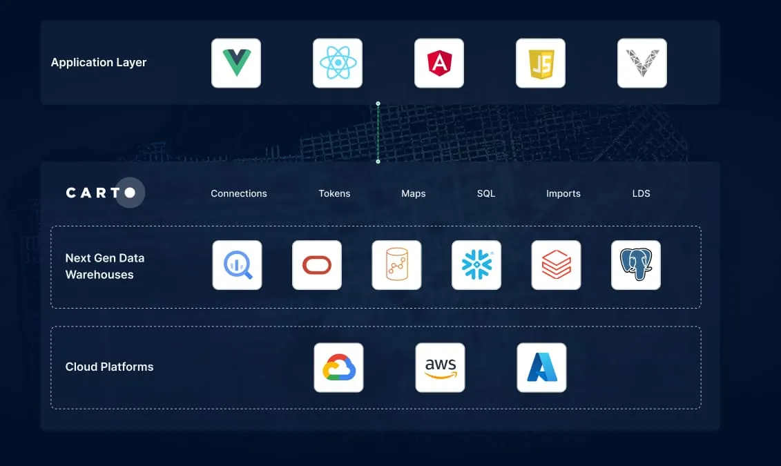 Eliminate ETL pain and data duplication by using CARTO to build your app entirely inside your lakehouse - BigQuery, Snowflake, Redshift, Databricks, Azure, and more.