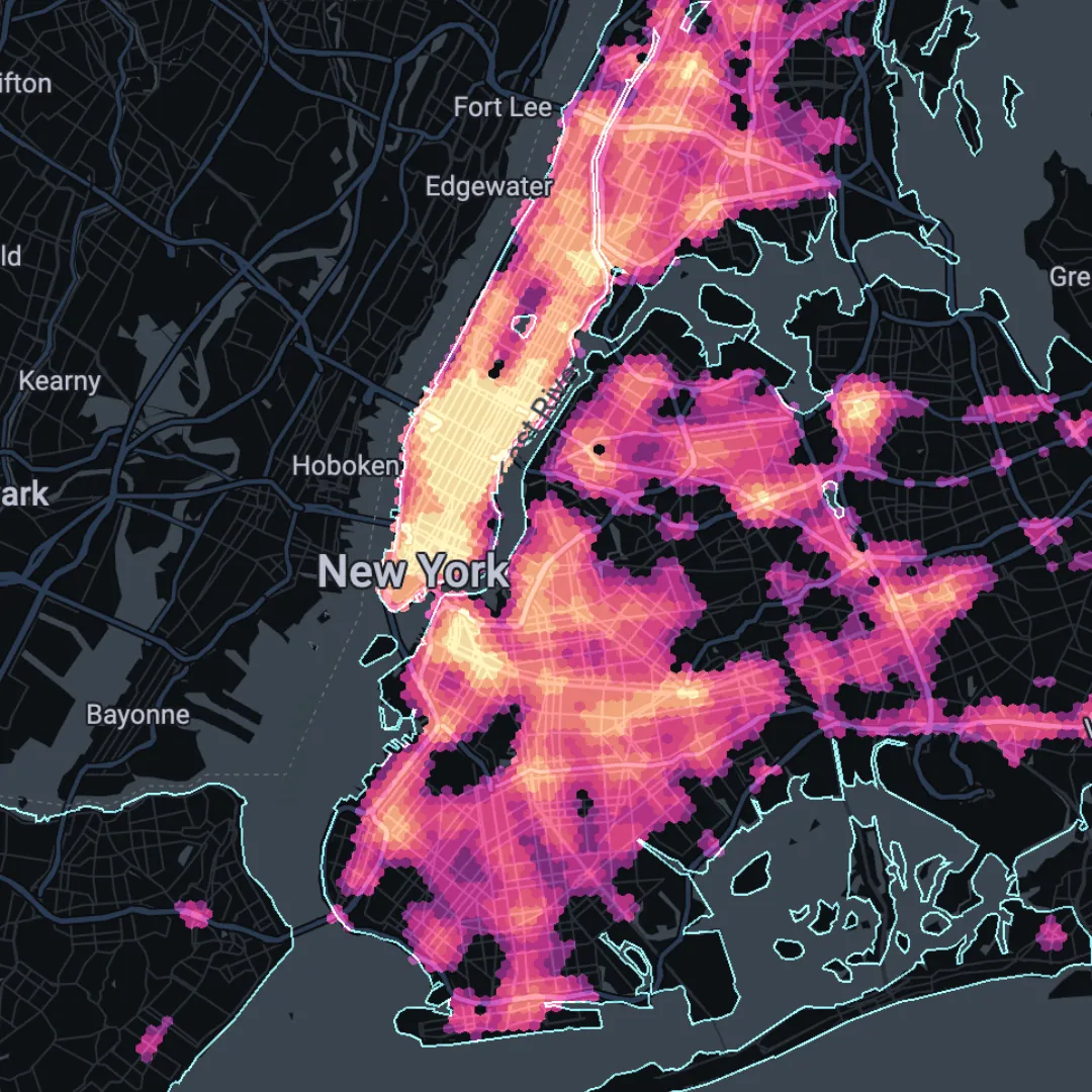 Sometimes the simplest visualizations are the best. Our Geospatial Advocate, Helen McKenzie, created this super minimalist visualization of Japan’s population density using WorldPop data from our Spatial Data Catalog, aggregated to a Quadbin grid - you can follow this methodology for any country in the world with this video. All of the basemap information has been switched off in CARTO Builder, allowing you to really focus on the data.