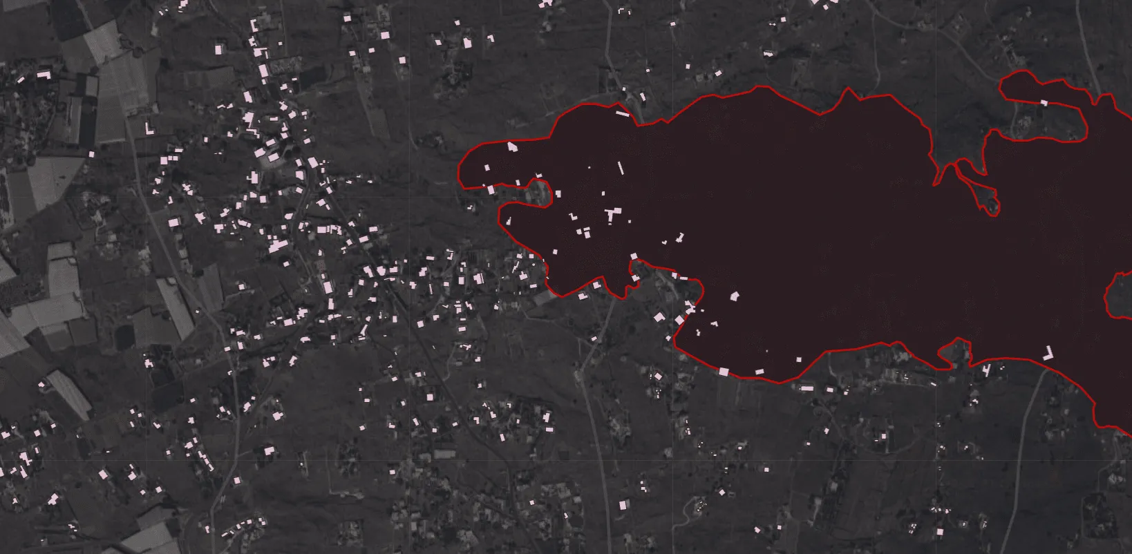 The Copernicus Emergency Management Service (CEMS) from Europe provides great data almost daily on the situation on the ground. Using that data we can overlay the current extent of the lava.