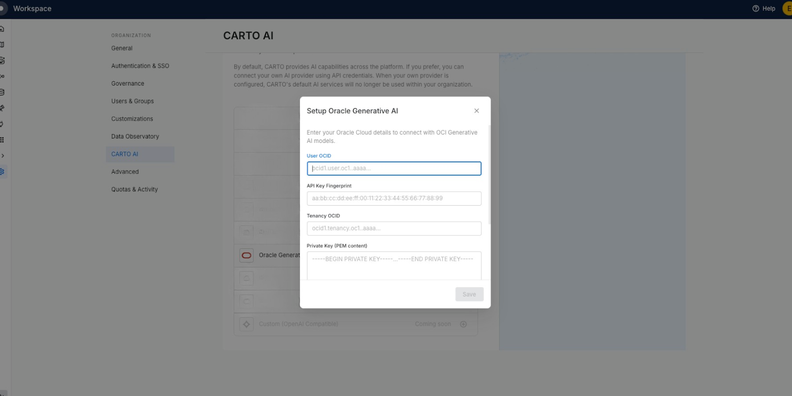 Setting up CARTO AI with Oracle Generative AI is simple and straightforward.
