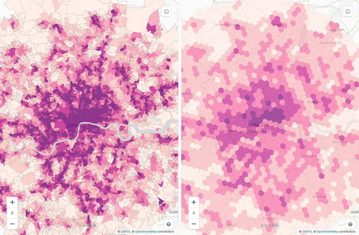 Users of CARTO can also take advantage of our Analytics Toolbox to perform complex, reproducible and scalable analysis on their gridded data. We have developed a variety of H3-specific functions - keep reading to see this in action!