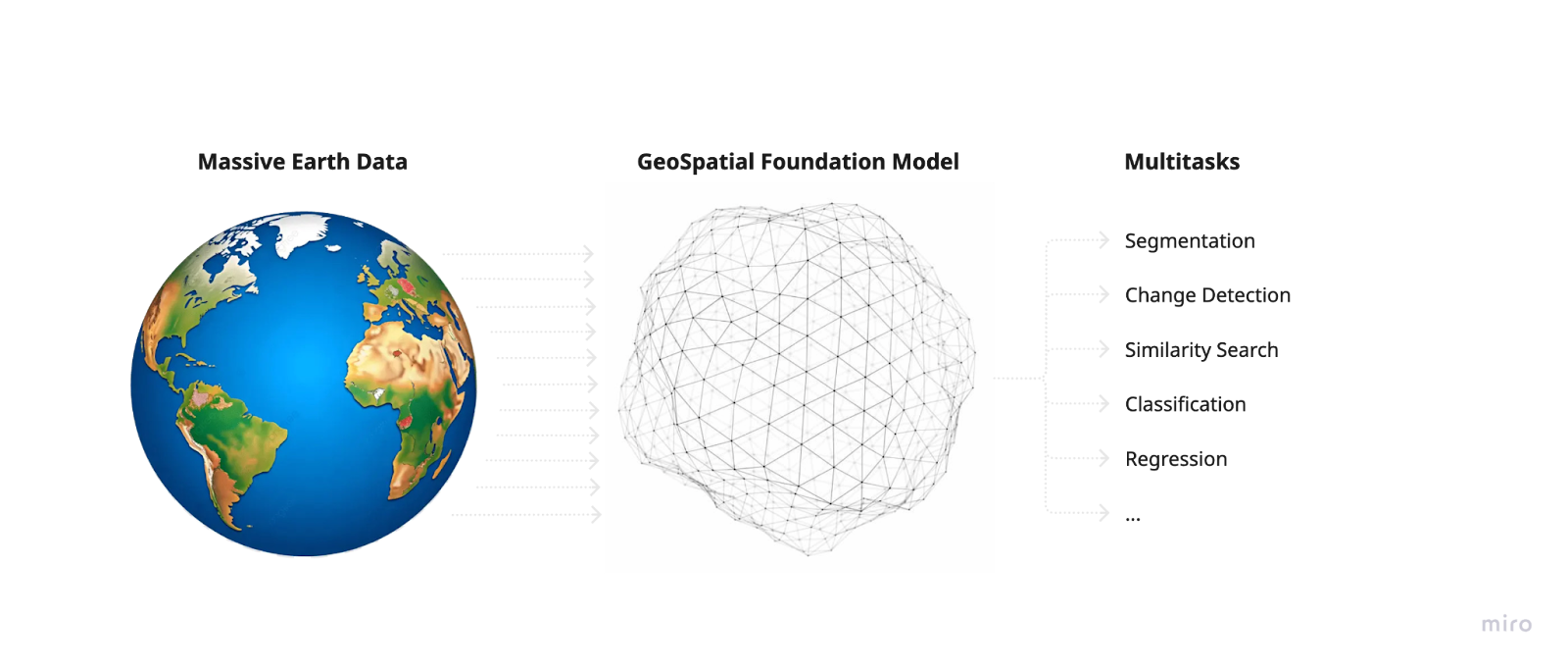 Lastly, Foundation Models can also be used as powerful feature extractors, generating embeddings that can then feed into traditional machine-learning workflows— such as regression, classification, or forecasting— alongside other geospatial and non-spatial variables.