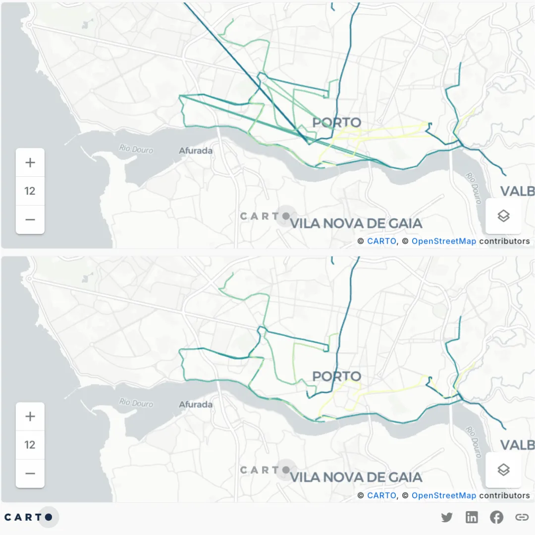 Previously, we explored how taxi trip data from Porto, Portugal, could be used to analyze mobility hotspots. By combining MovingPandas and CARTO, we demonstrated how to extract patterns and insights from extensive datasets. The taxi trip data consisted of GPS measurements taken every 15 seconds over a week.