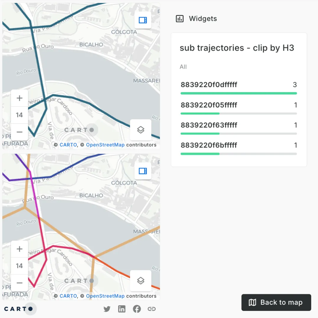 Our work with MovingPandas and CARTO within the Snowflake Lakehouse environment illustrates the power of integrated tools for analyzing urban mobility. By seamlessly combining data processing, spatial and temporal analysis, and visualization, we provide a comprehensive framework that empowers users to extract valuable insights from complex mobility datasets.