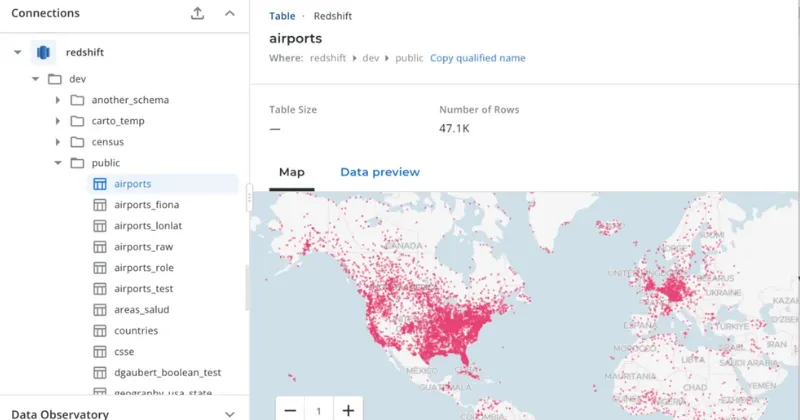 Connect CARTO to Amazon Redshift and forget about moving data out of your lakehouse to solve your geospatial needs.