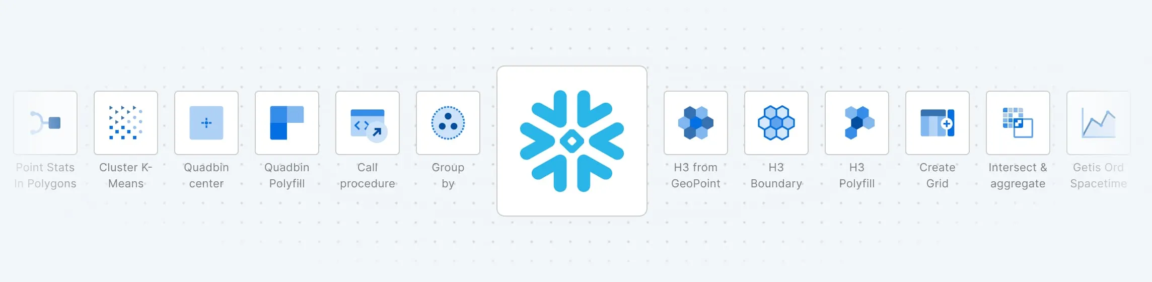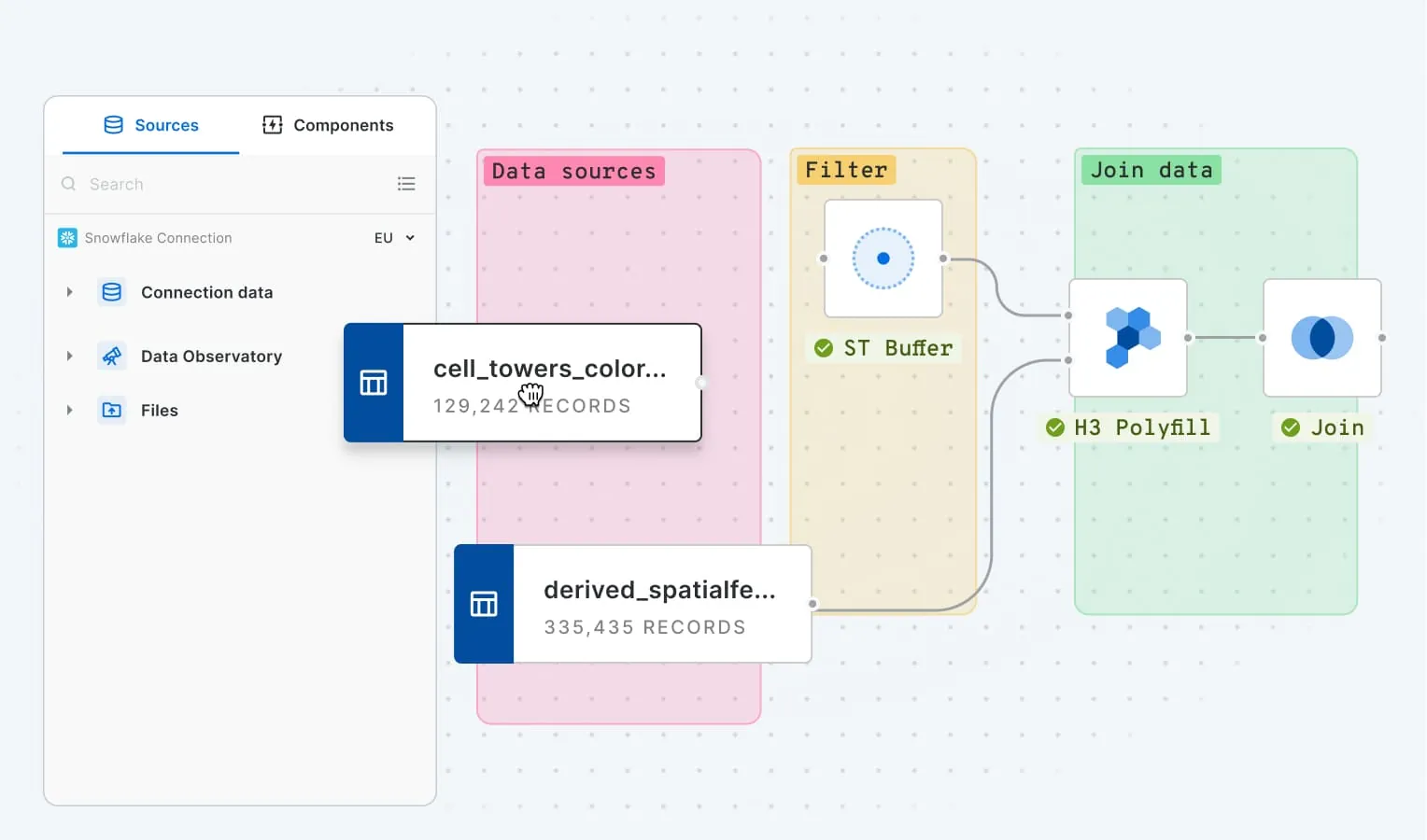 Simplify your analytics with Workflows, our low-code tool for automating spatial analysis. Customize & extend your workflows and get direct access to Snowflake features like Snowflake ML - all inside your lakehouse.